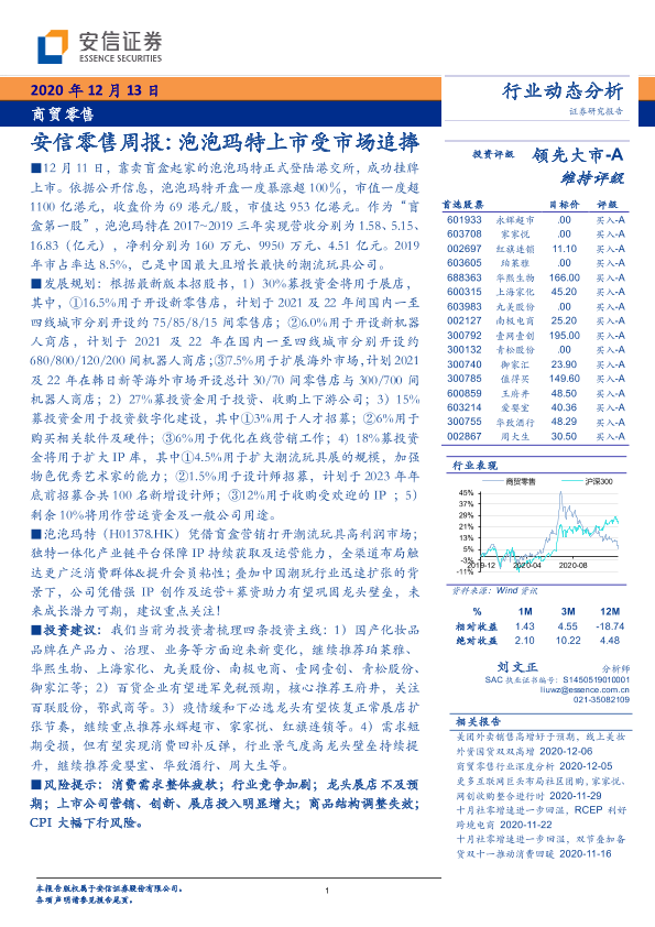 【安信证券】【20201213】安信零售周报:泡泡玛特上市受市场追捧-10页