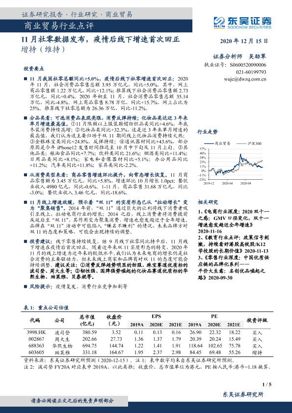 【东吴证券】【20201215】11月社零数据发布,疫情后线下增速首次回正-5页