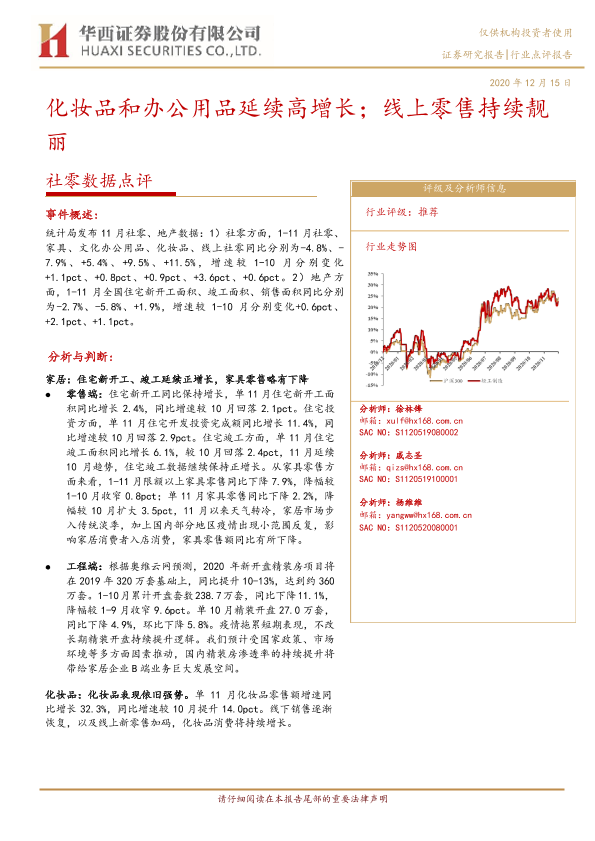 【华西证券】【20201215】社零数据点评:化妆品和办公用品延续高增长;线上零售持续靓丽-7页