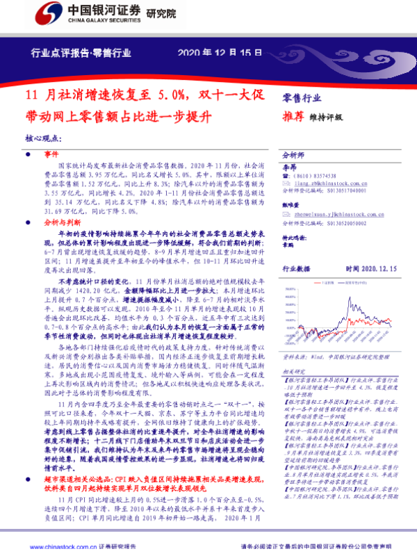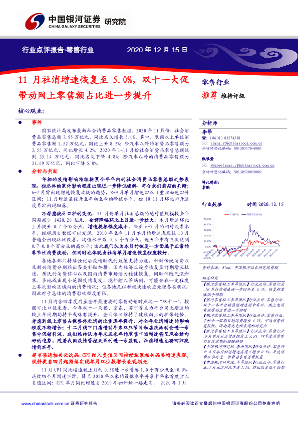 【银河证券】【20201215】11月社消增速恢复至5.0%,双十一大促带动网上零售额占比进一步提升-4页