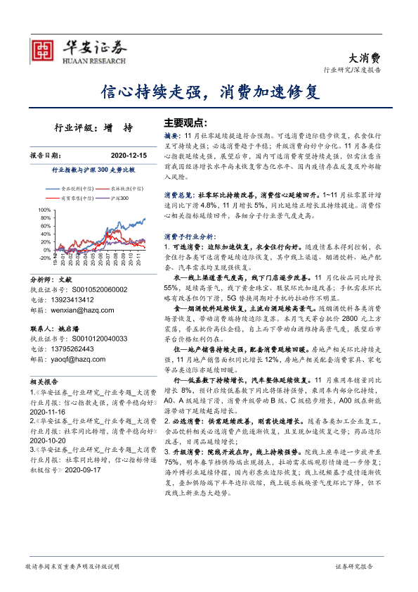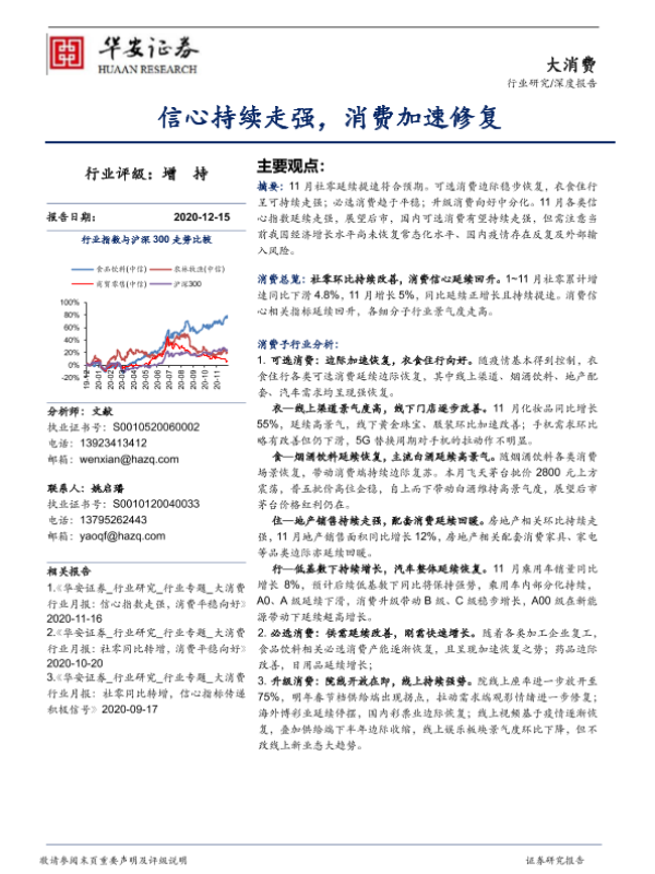 【华安证券】【20201215】大消费深度报告:信心持续走强,消费加速修复-22页