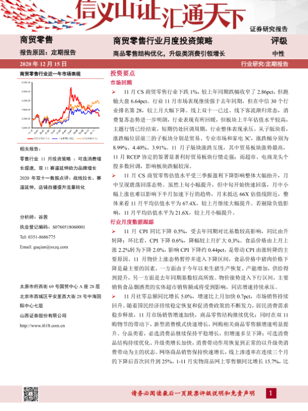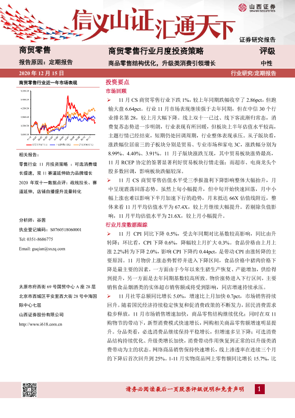 【山西证券】【20201215】商贸零售行业月度投资策略:商品零售结构优化,升级类消费引领增长-16页