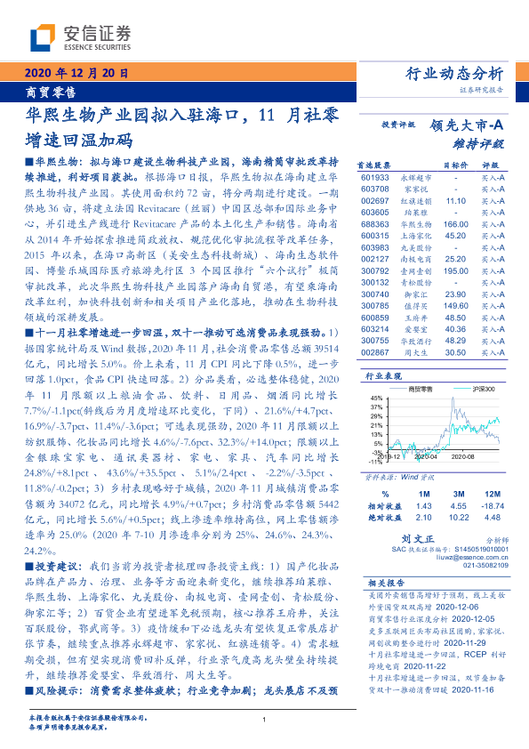 【安信证券】【20201220】商贸零售行业动态分析:华熙生物产业园拟入驻海口,11月社零增速回温加码-14页