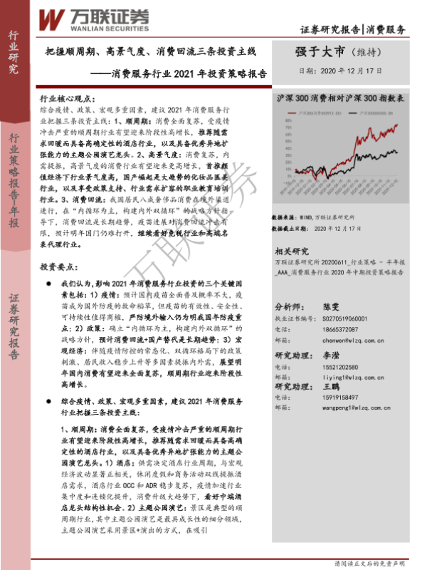 【万联证券】【20201217】消费服务行业2021年投资策略报告:把握顺周期、高景气度、消费回流三条投资主线-55页