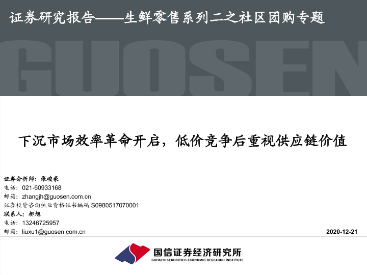 【国信证券】【20201221】生鲜零售系列二之社区团购专题:下沉市场效率革命开启,低价竞争后重视供应链价值-52页