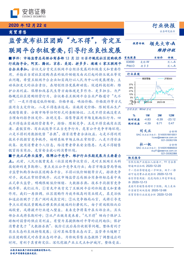 【安信证券】【20201222】监管发布社区团购'九不得',肯定互联网平台积极重要,引导行业良性发展-4页