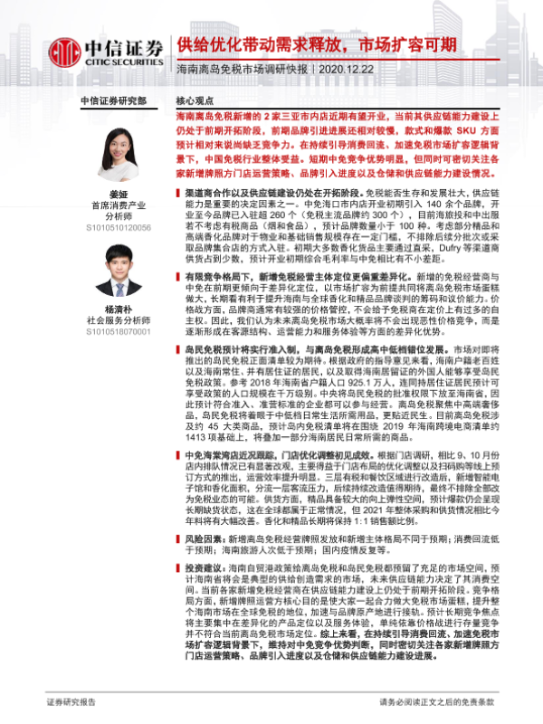 【中信证券】【20201222】海南离岛免税市场调研快报:供给优化带动需求释放,市场扩容可期-8页