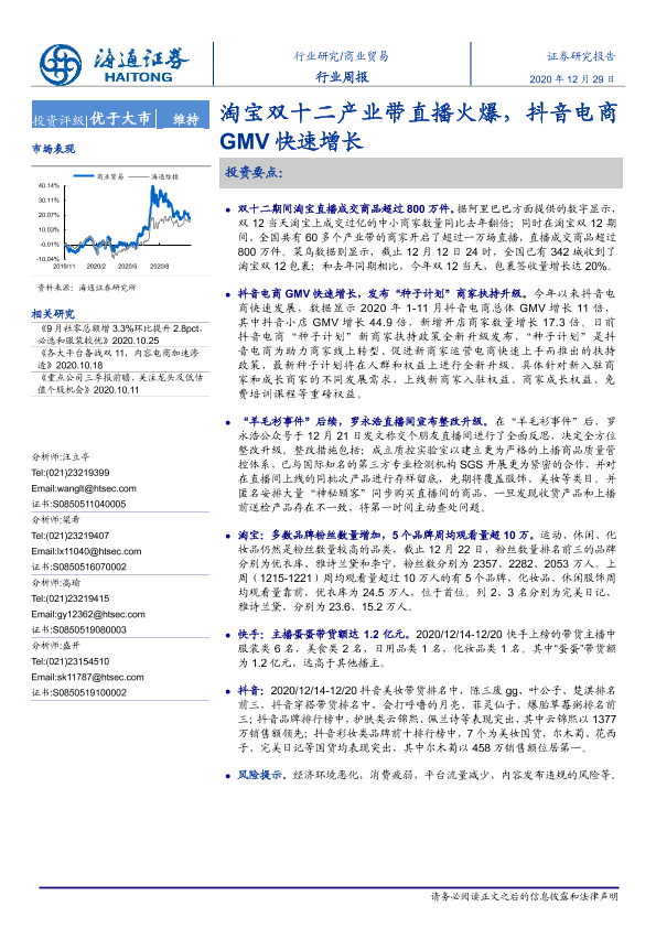 【海通证券】【20201229】淘宝双十二产业带直播火爆,抖音电商GMV快速增长-11页