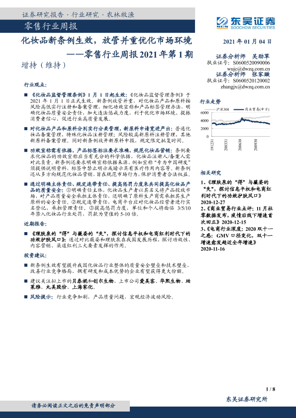 【东吴证券】【20210104】零售行业周报2021年第1期:化妆品新条例生效,放管并重优化市场环境-8页