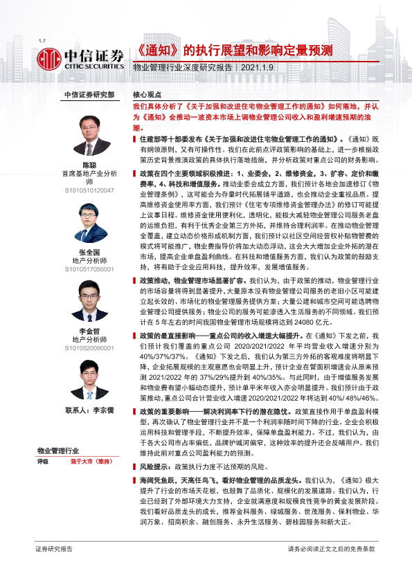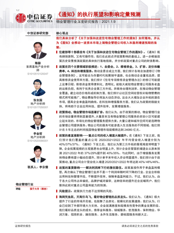 【中信证券】【20210109】物业管理行业深度研究报告:《通知》的执行展望和影响定量预测-23页