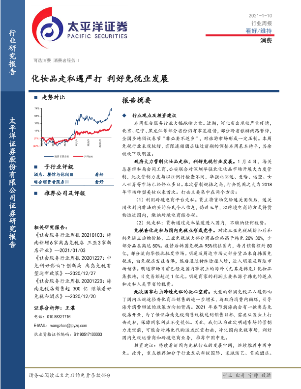 【太平洋证券】【20210110】消费行业周报:化妆品走私遇严打 利好免税业发展-14页