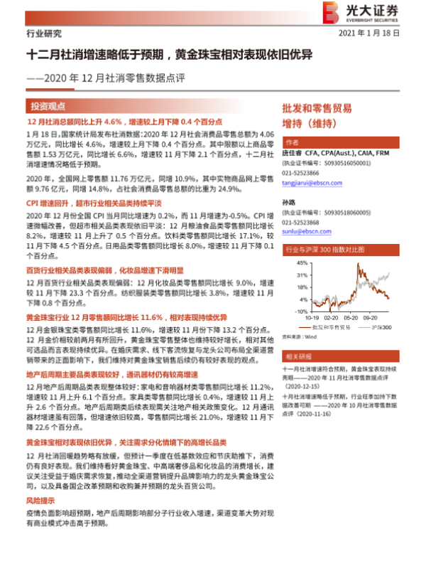 【光大证券】【20210118】十二月社消增速略低于预期,黄金珠宝相对表现依旧优异-6页