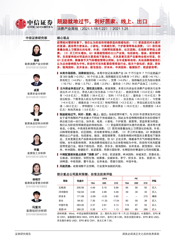 【中信证券】【20210125】鼓励就地过节,利好居家、线上、出口-10页
