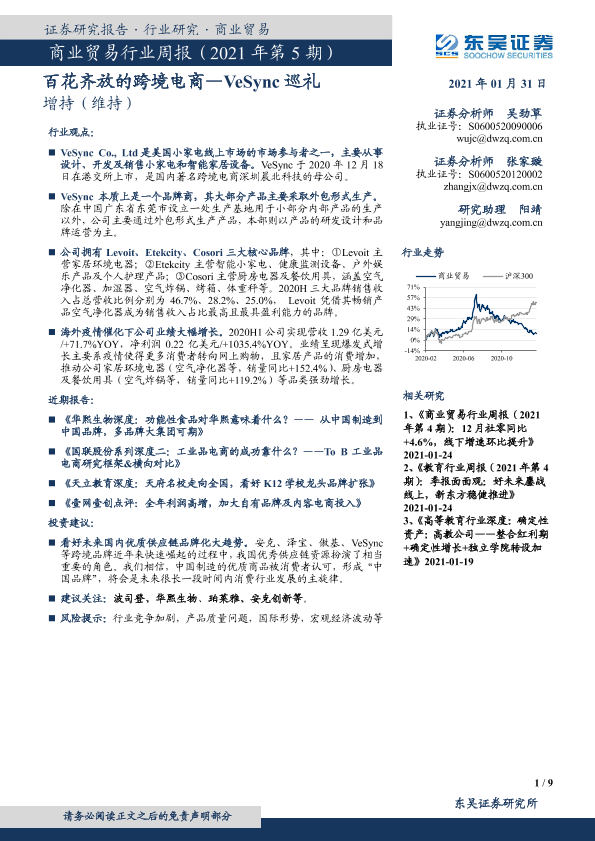 【东吴证券】【20210131】商业贸易行业周报:百花齐放的跨境电商—VeSync巡礼-9页