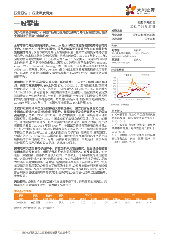 【天风证券】【20210127】一般零售行业深度研究:海外电商渗透率提升&中国产品能力提升推动跨境电商行业快速发展-21页