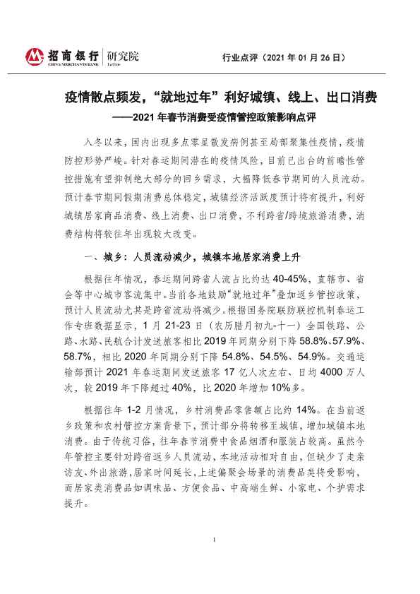 【招商银行】【20210126】2021年春节消费受疫情管控政策影响点评-3页