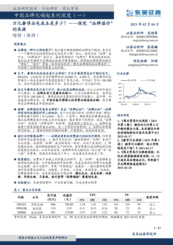 【东吴证券】【20210204】中国品牌化崛起系列深度(一):深究“品牌溢价”的来源-27页