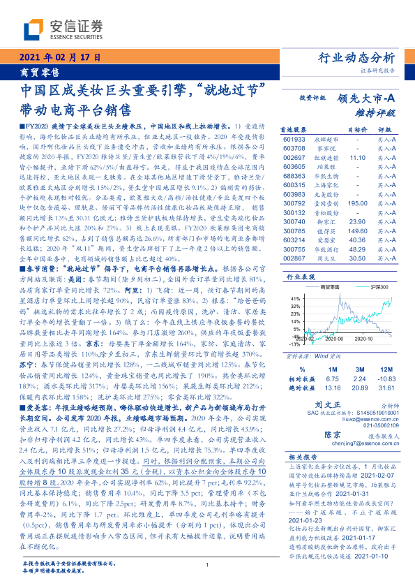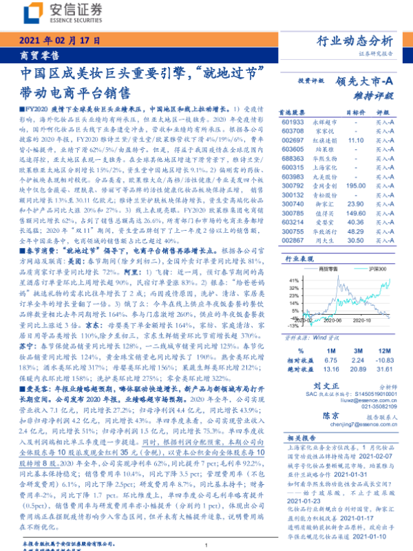 【安信证券】【20210217】商贸零售:中国区成美妆巨头重要引擎,“就地过节”带动电商平台销售-16页