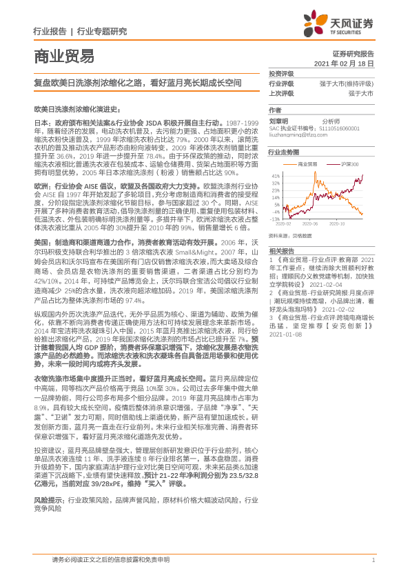 【天风证券】【20210218】复盘欧美日洗涤剂浓缩化之路,看好蓝月亮长期成长空间-22页