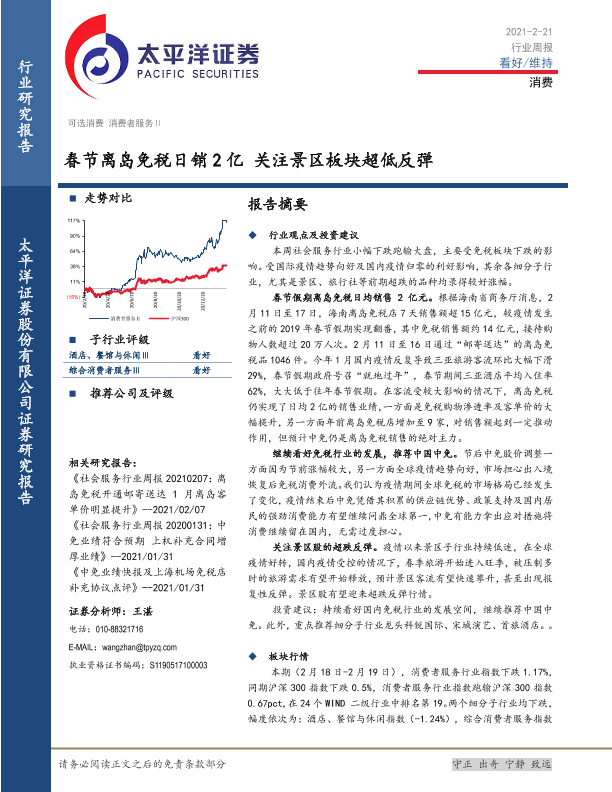 【太平洋证券】【20210221】消费行业周报:春节离岛免税日销2亿 关注景区板块超低反弹-15页