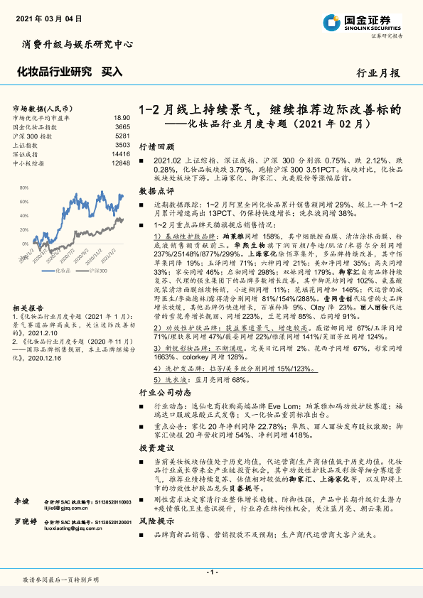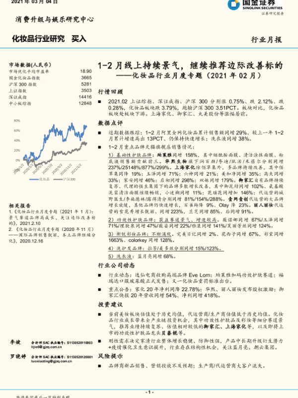 化妆品行业 品牌分析 市场表现 投资建议 线上销售