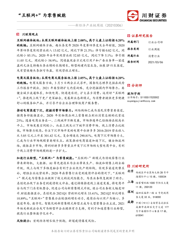 【川财证券】【20210306】新经济产业链周报:“互联网+”为零售赋能-12页