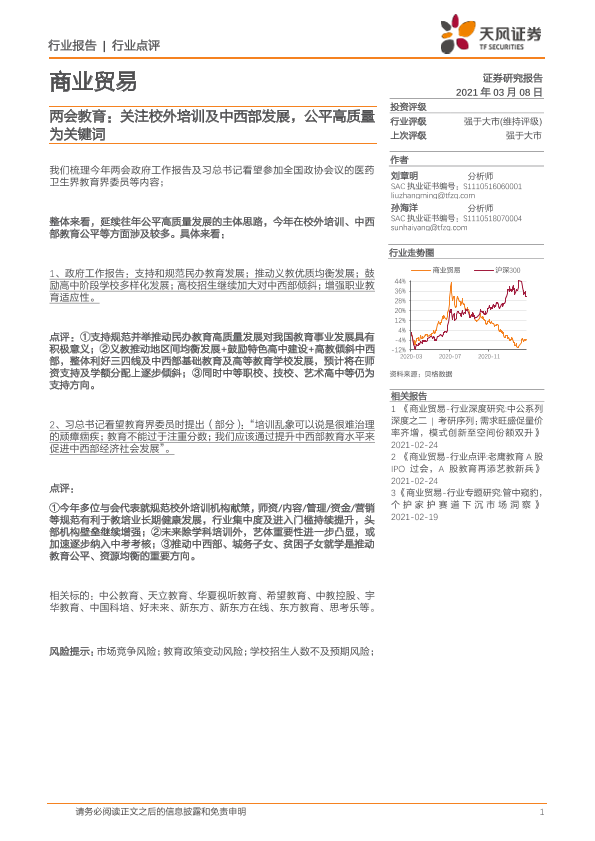【天风证券】【20210308】两会教育:关注校外培训及中西部发展,公平高质量为关键词-2页