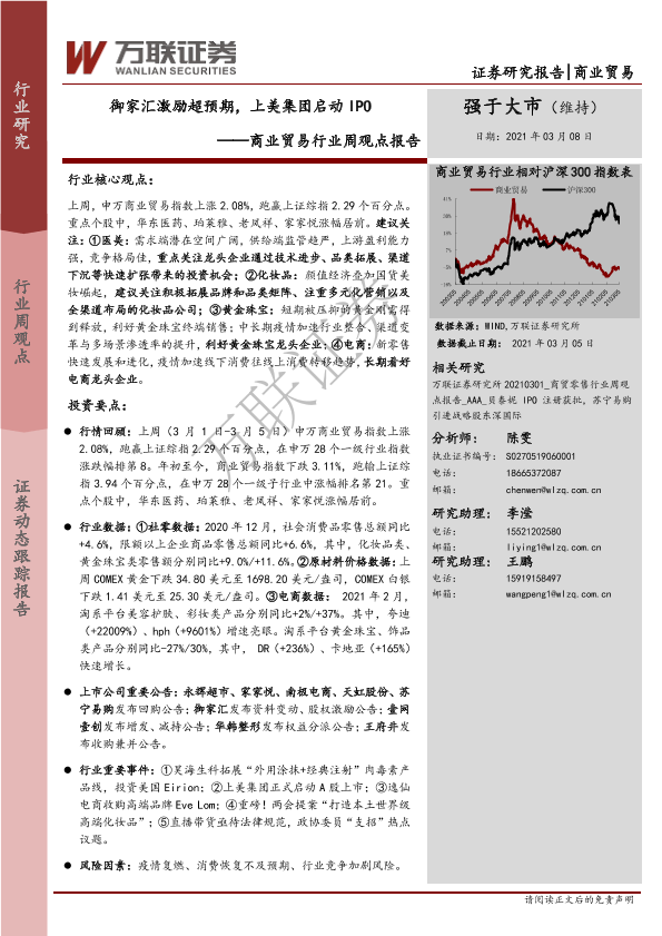 【万联证券】【20210308】商业贸易行业周观点报告:御家汇激励超预期,上美集团启动IPO-13页