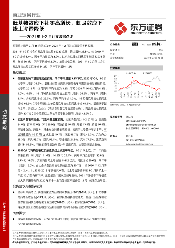 【东方证券】【20210315】2021年1-2月社零数据点评:低基数效应下社零高增长,虹吸效应下线上渗透降低-7页