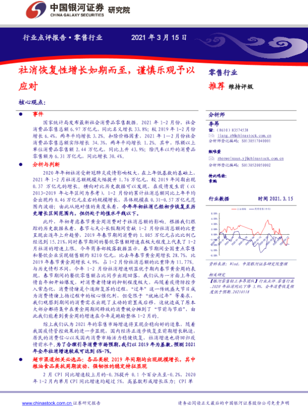 【银河证券】【20210315】零售行业:社消恢复性增长如期而至,谨慎乐观予以应对-4页