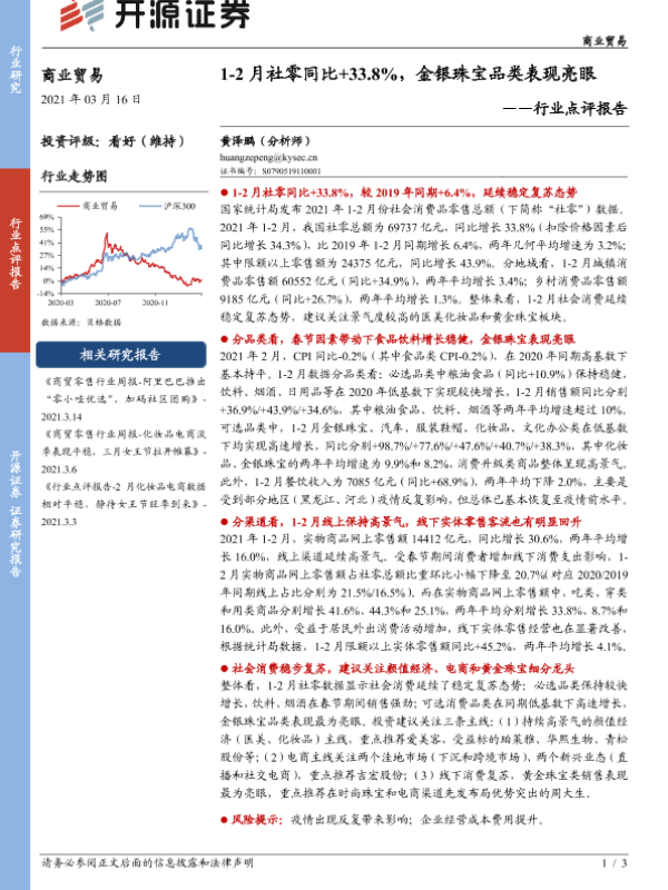 【开源证券】【20210316】1-2月社零同比+33.8%,金银珠宝品类表现亮眼-3页