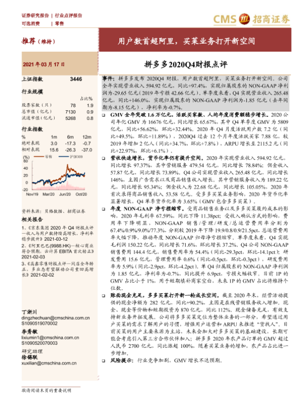 买菜业务 拼多多 用户增长 电子商务 财报点评