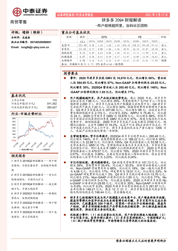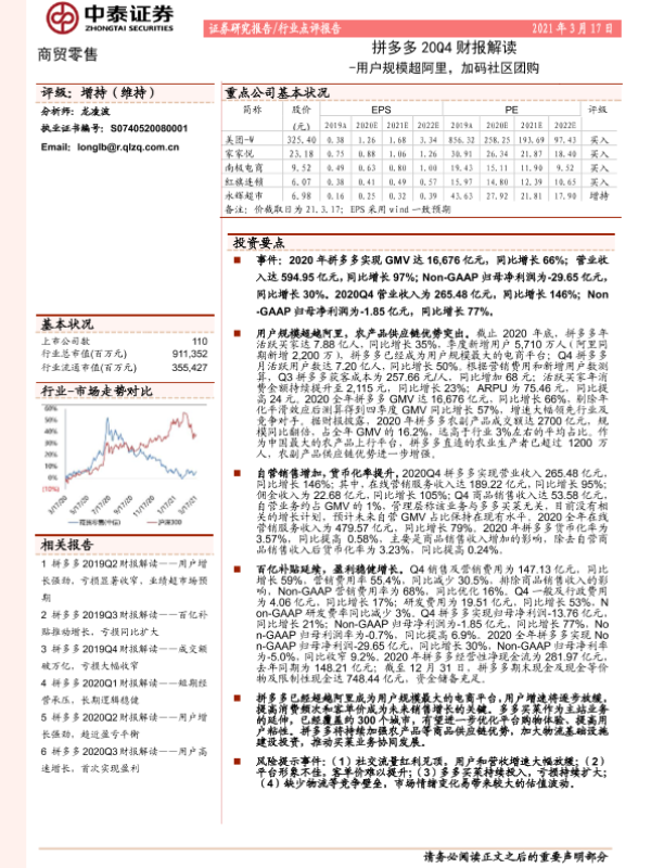【中泰证券】【20210317】商贸零售行业:拼多多20Q4财报解读-5页