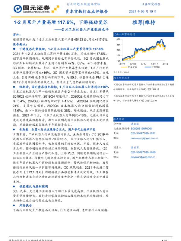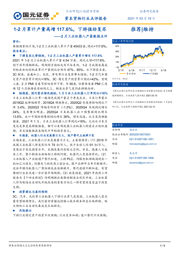 【国元证券】【20210319】2月工业机器人产量数据点评:1-2月累计产量高增117.6%,下游强劲复苏-5页