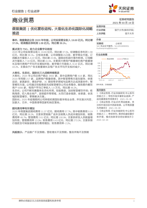 【天风证券】【20210319】商业贸易行业点评:微盟集团优化营收结构,大客化生态化国际化战略推进-5页