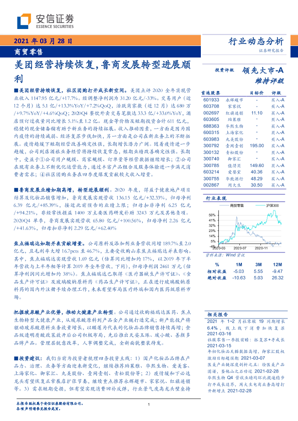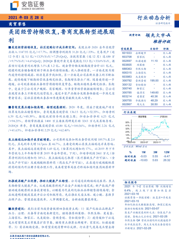 【安信证券】【20210328】商贸零售行业:美团经营持续恢复,鲁商发展转型进展顺利-16页
