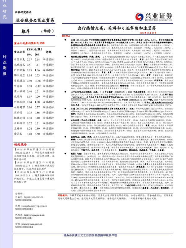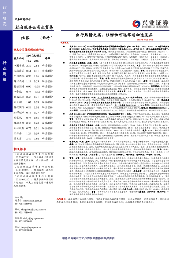 【兴业证券】【20210329】社会服务&商业贸易行业周报:出行热情走高,旅游和可选零售加速复苏-20页