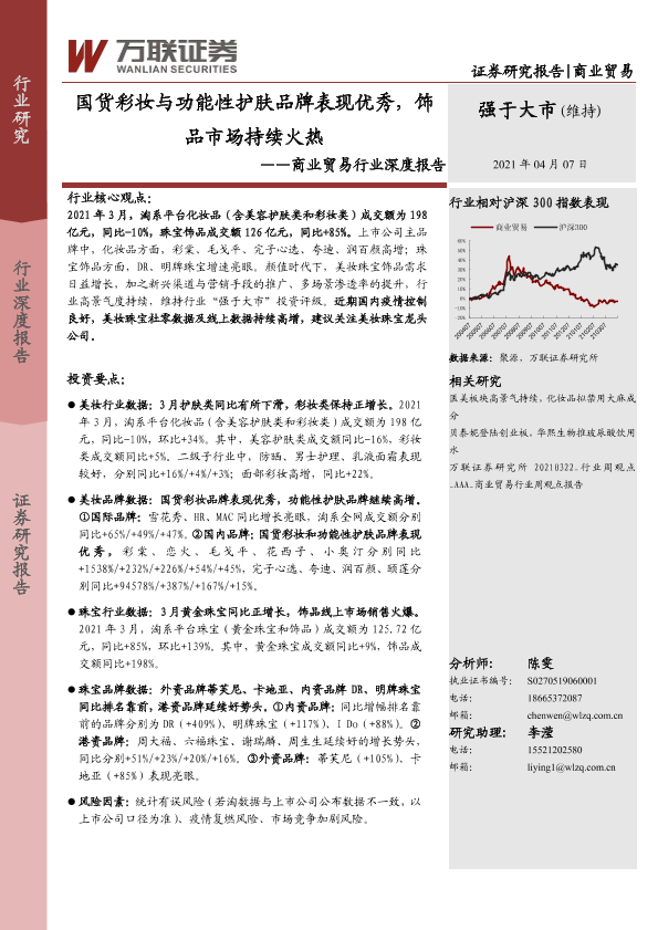 【万联证券】【20210407】商业贸易行业深度报告:国货彩妆与功能性护肤品牌表现优秀,饰品市场持续火热-16页