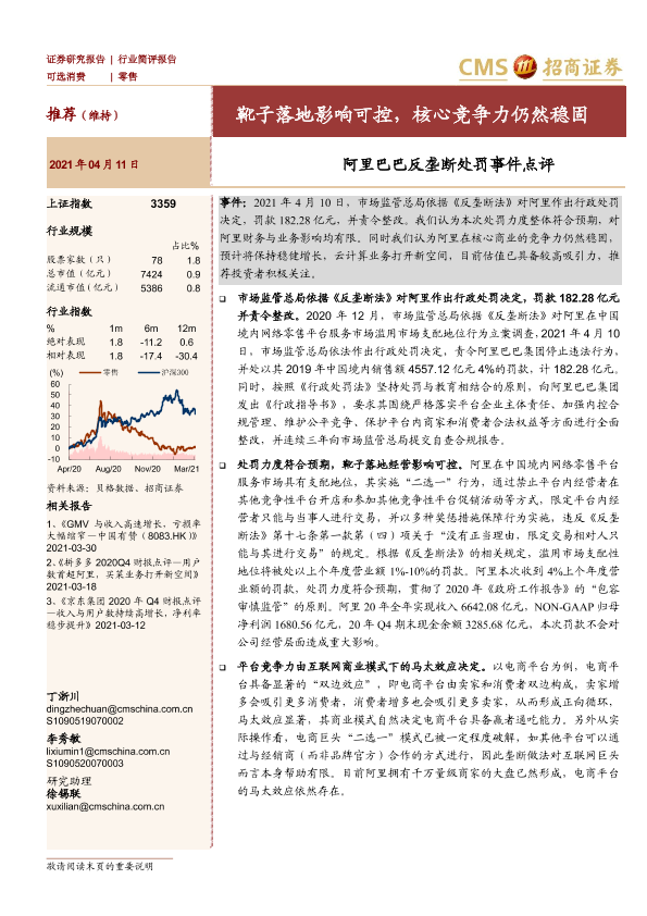 【海通证券】【20210411】零售:阿里巴巴反垄断处罚事件点评-3页