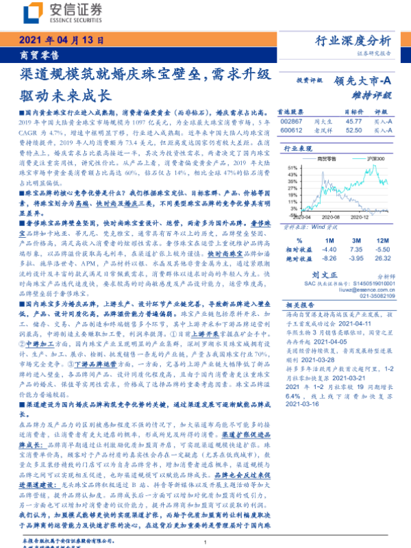 【安信证券】【20210413】商贸零售行业深度分析:渠道规模筑就婚庆珠宝壁垒,需求升级驱动未来成长-34页