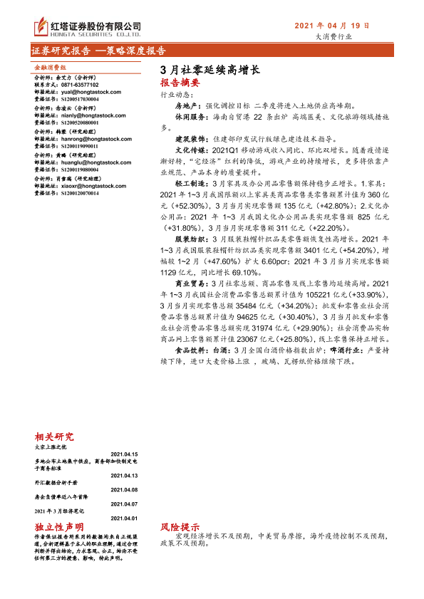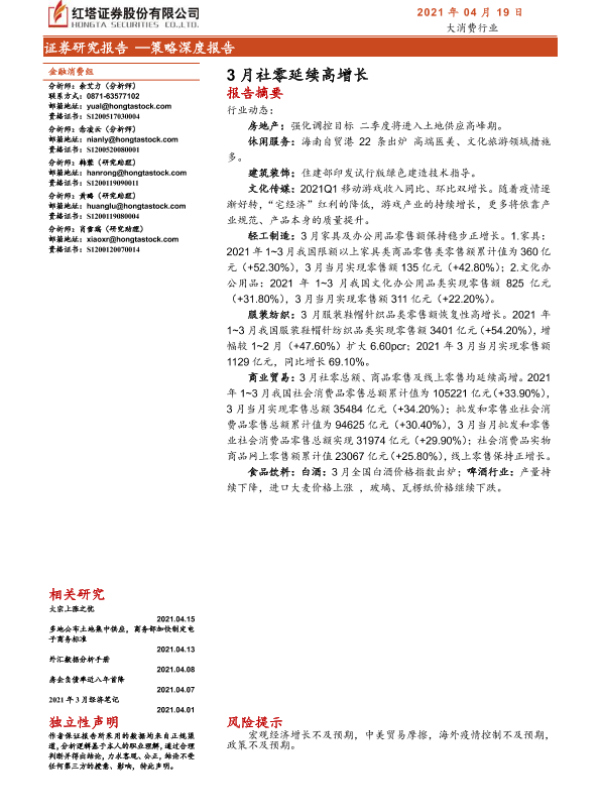 【红塔证券】【20210419】3月社零延续高增长-30页