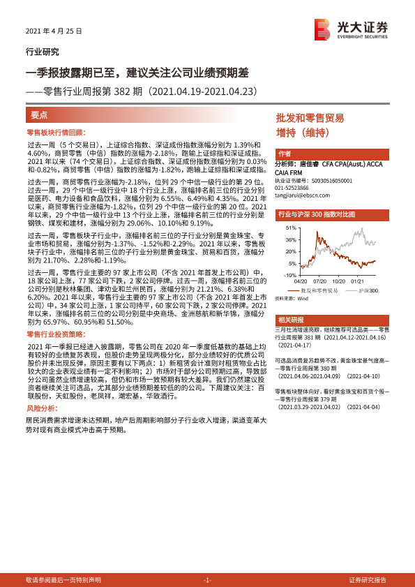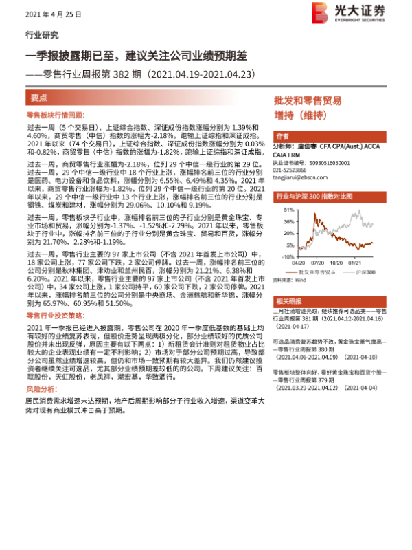 【光大证券】【20210425】零售行业周报第382期:一季报披露期已至,建议关注公司业绩预期差-8页