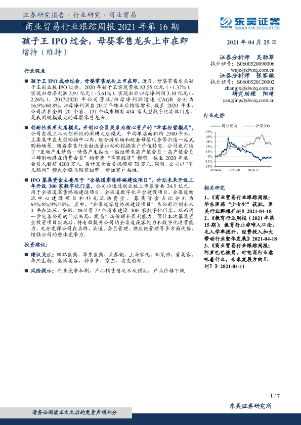 【东吴证券】【20210425】商业贸易行业跟踪周报2021年第16期:孩子王IPO过会,母婴零售龙头上市在即-7页
