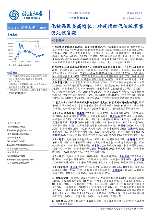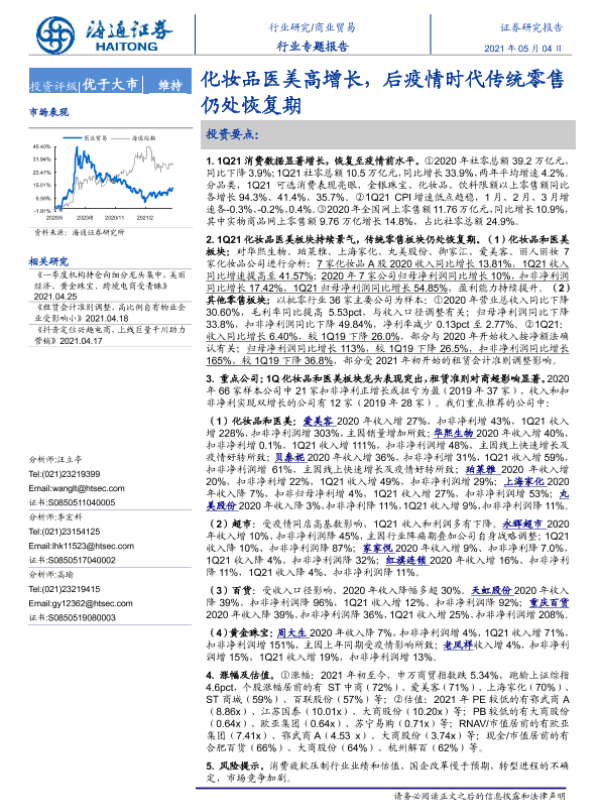 【海通证券】【20210504】商业贸易行业专题报告:化妆品医美高增长,后疫情时代传统零售仍处恢复期-18页