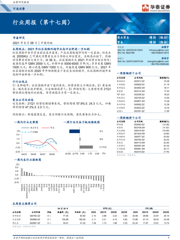 【华泰证券】【20210506】商业贸易行业周报(第十七周)-18页