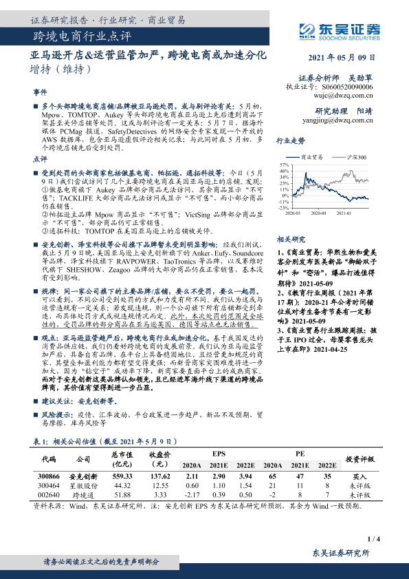 【东吴证券】【20210509】跨境电商行业点评:亚马逊开店&运营监管加严,跨境电商或加速分化-4页