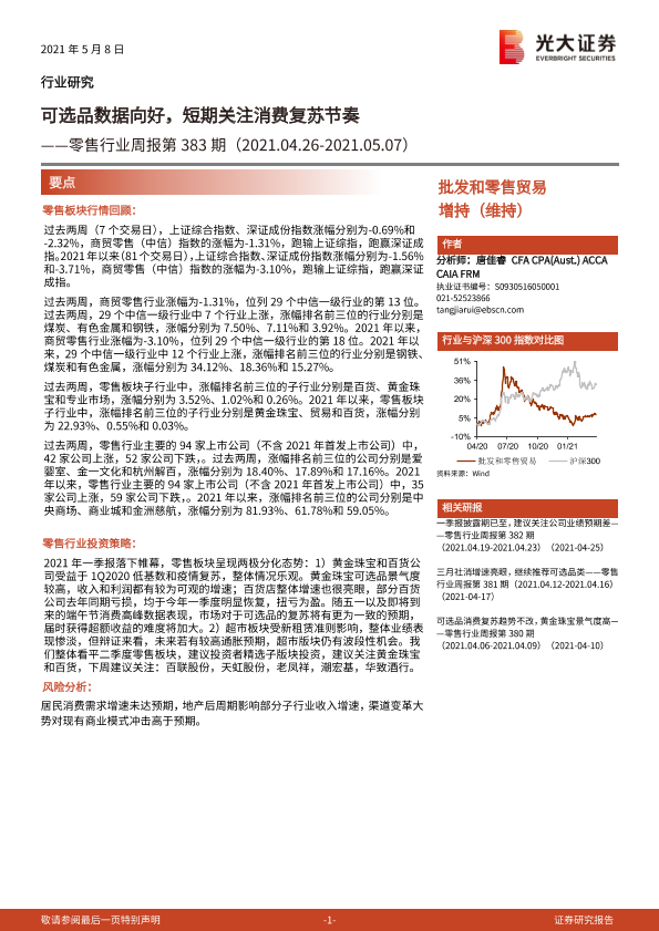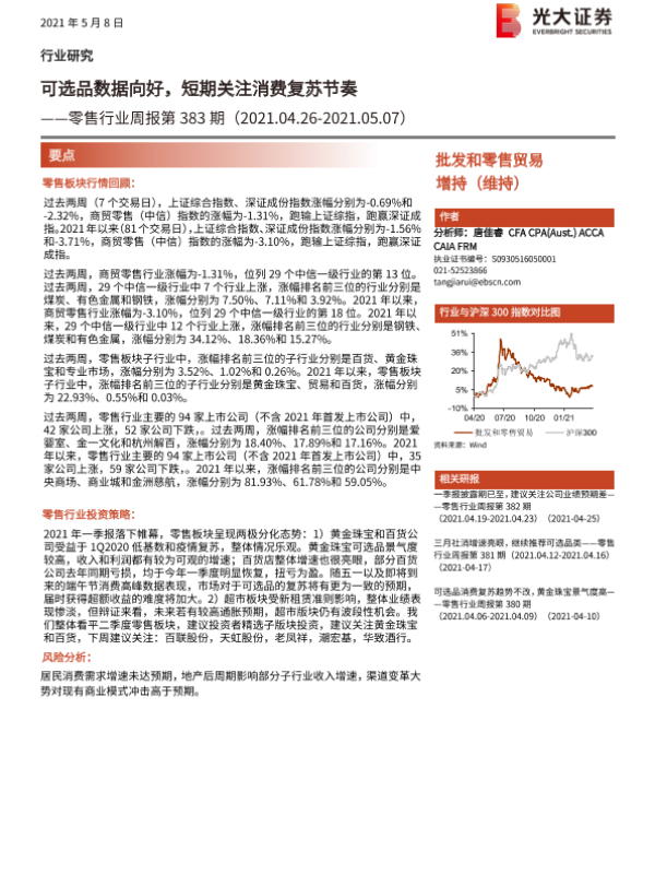 【光大证券】【20210508】零售行业周报第383期:选品数据向好,短期关注消费复苏节奏-8页