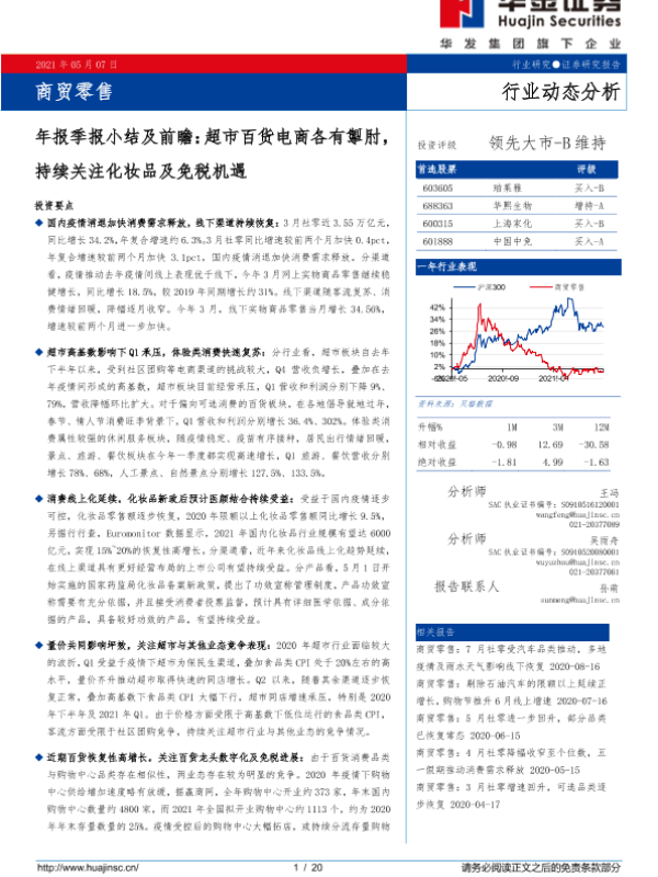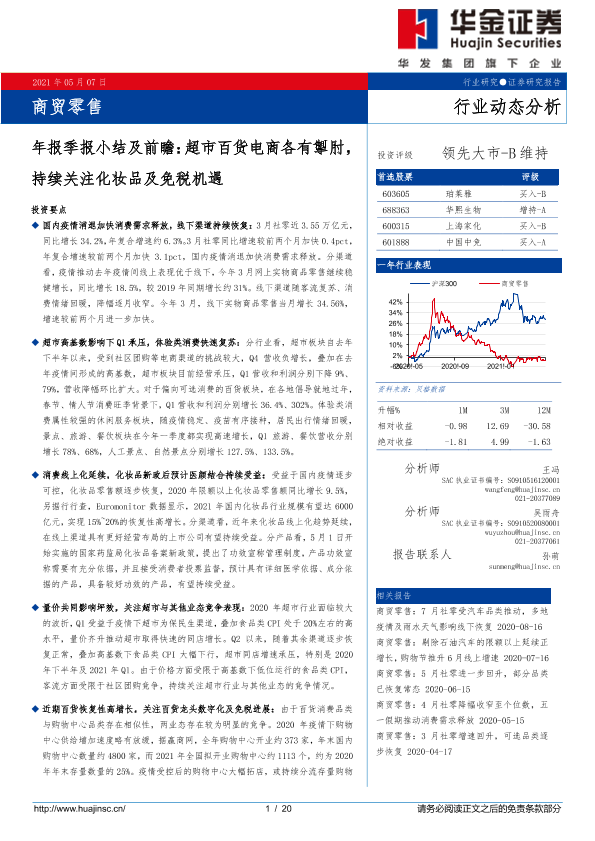 【华金证券】【20210507】商贸零售:年报季报小结及前瞻:超市百货电商各有掣肘,持续关注化妆品及免税机遇-20页