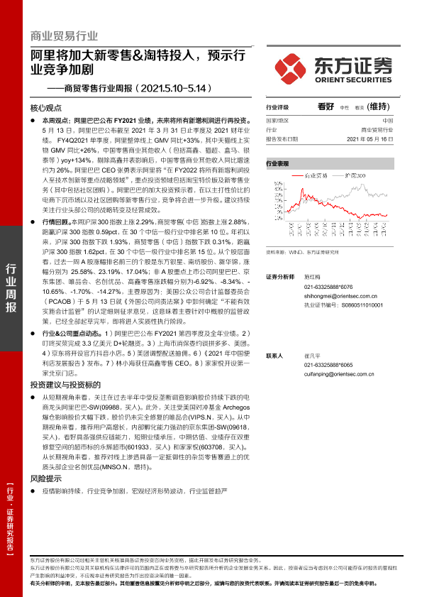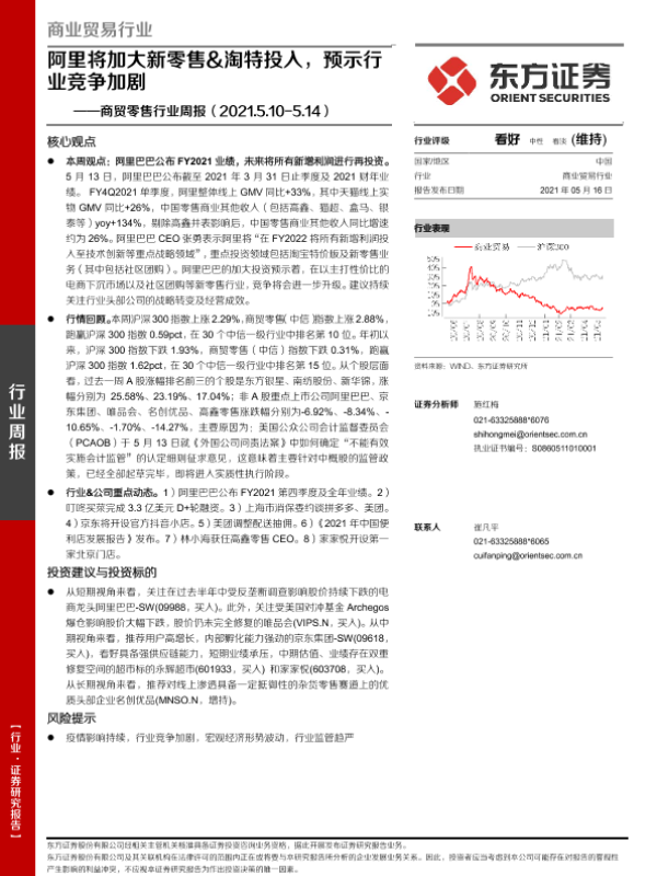 【东方证券】【20210516】商贸零售行业周报:阿里将加大新零售&淘特投入,预示行业竞争加剧-7页