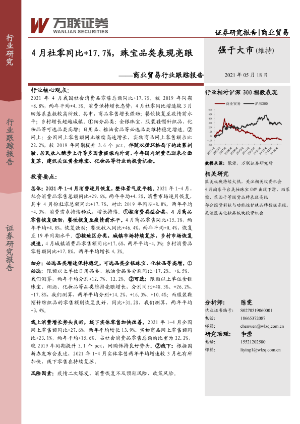 【万联证券】【20210518】4月社零同比+17.7%,珠宝品类表现亮眼-7页